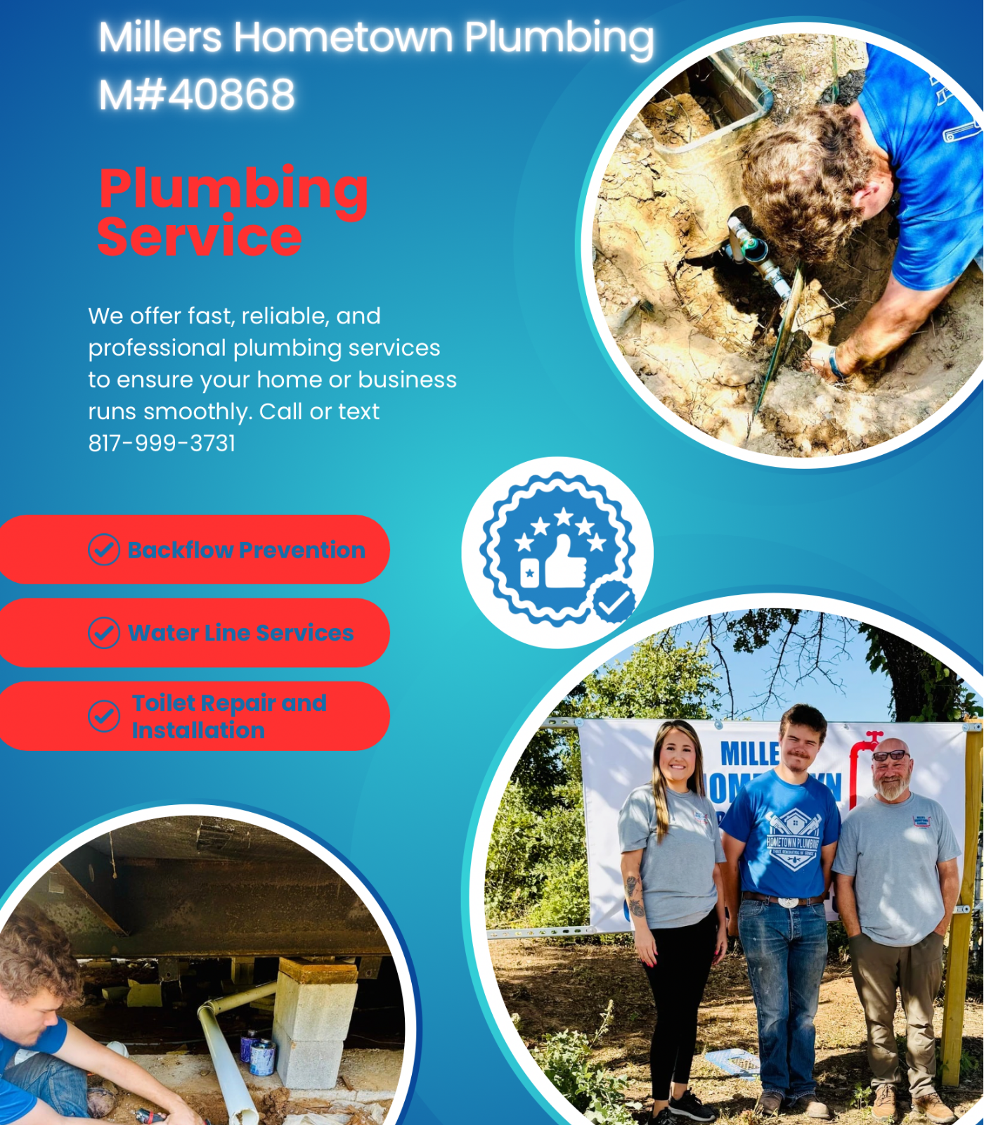 Fast, reliable, and professional—Miller’s Hometown Plumbing delivers expert service when it matters most. From backflow prevention to toilet repairs, we keep homes and businesses running smoothly across North Texas. Call or text 817-999-3731 for licensed plumbing solutions—License #RMP-40868. #PlumbingService #LicensedExperts #ReliableWork #NorthTexasHomes #TrustedPlumber